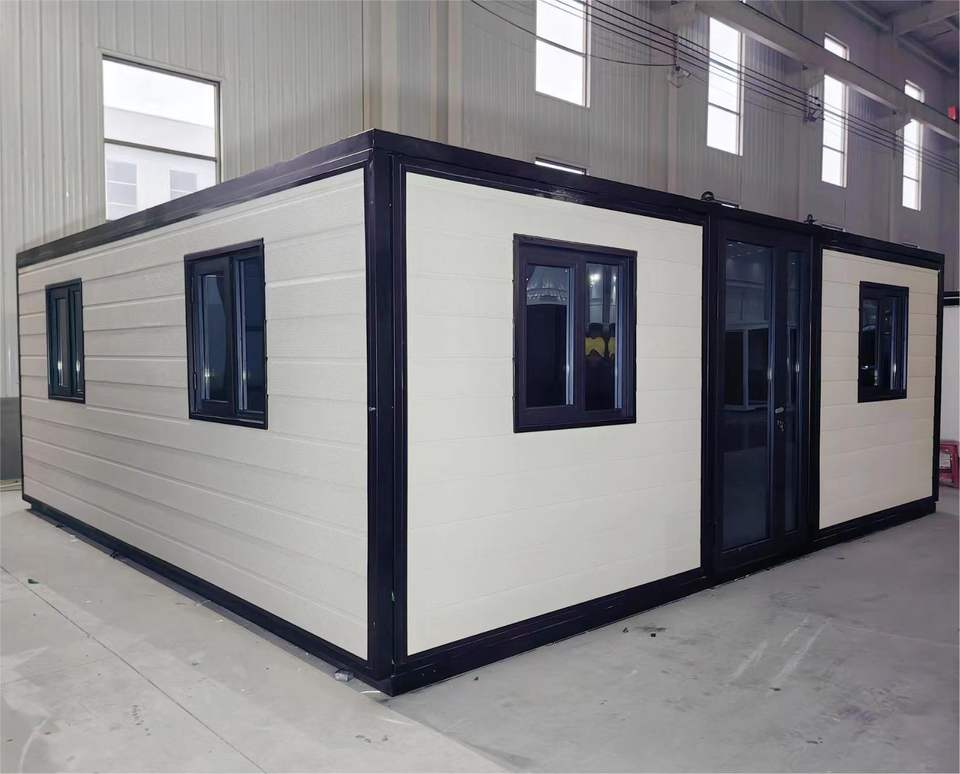 Casas de contenedores de envío expandibles modulares de doble ala de acero de 20 pies y 40 pies con dormitorio, baño y cocina