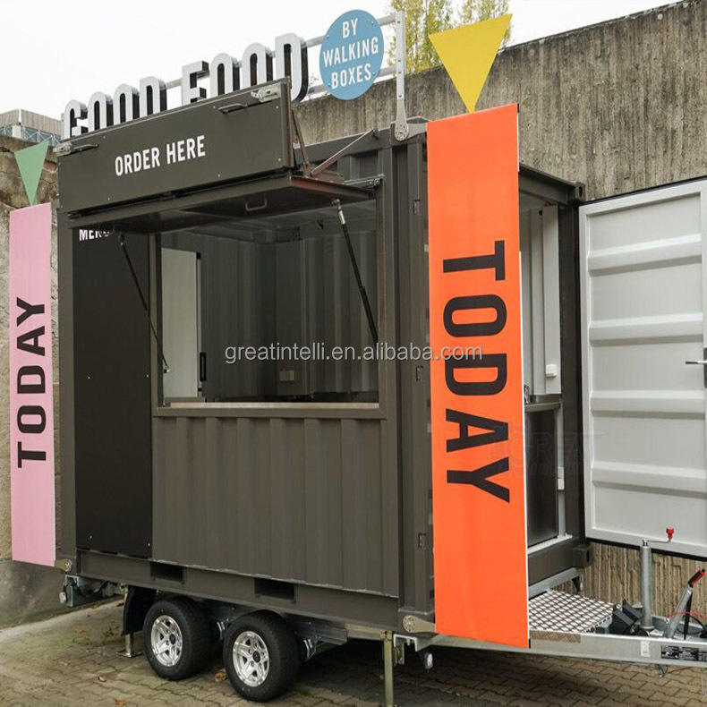 Contenedor móvil de 20 pies para restaurantes, remolque de servicio completo, cafetería y cafetería para entornos urbanos
