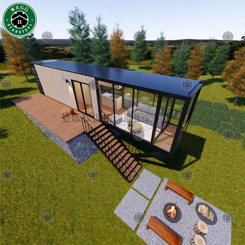 Casa contenedor de acero de doble capa ligera de 20 pies, paquete plano, diseño Simple prefabricado para acampar, casa contenedor desmontable