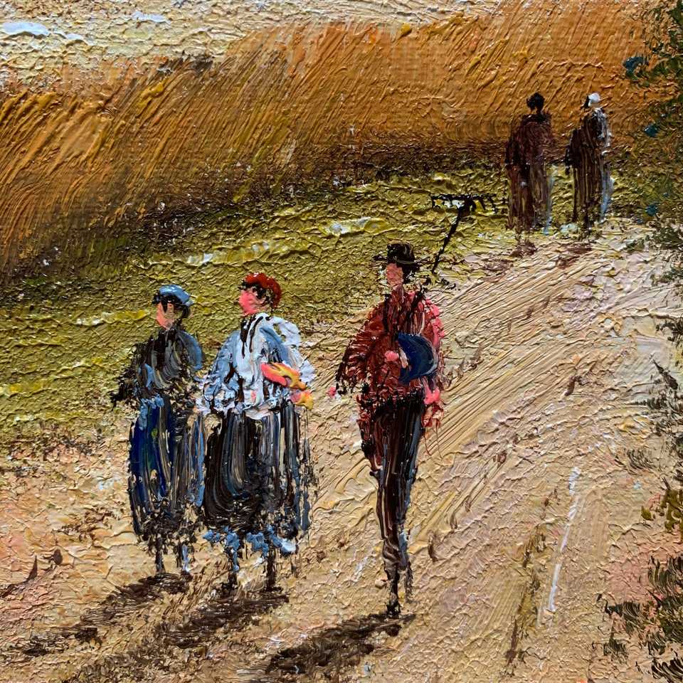 20in × 24in 100% pintura al óleo pintada a mano Arte Fino de tres personas en la granja campo clásico tema abstracto Marco de textura 3D