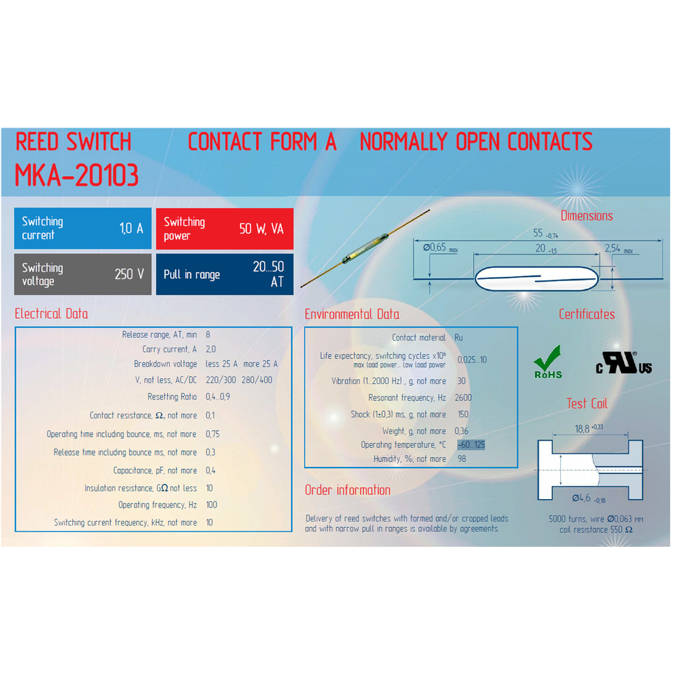 Interruptores de láminas de 20mm MKA20103, RMCIP, normalmente abiertos, con cubierta de vidrio, de la marca RMCIP