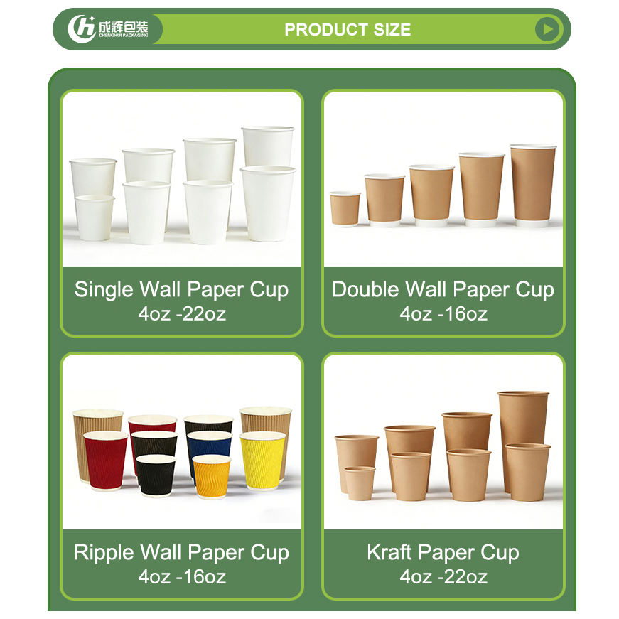 Material de papel recubierto: El material de papel recubierto garantiza que los vasos sean resistentes al agua y duraderos, haciéndolos adecuados tanto para bebidas calientes como frías.