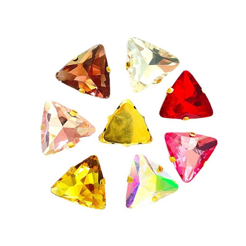 Diamantes de imitación para coser, Parte posterior plana, triángulo, cristal, garra, taladro, Color, cosido a mano, DIY, accesorios para zapatos de boda, 20 piezas
