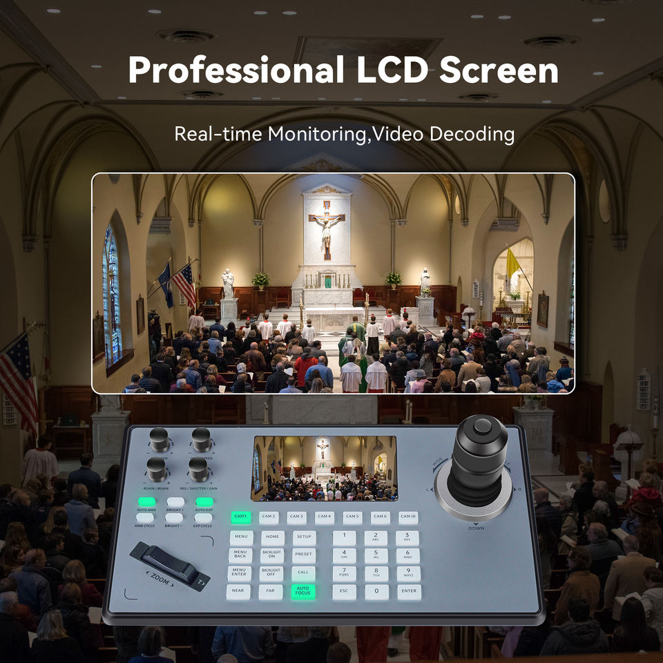 Cámara PTZ para Conferencias (20x) y Controlador con Joystick 4D para Transmisión en Vivo en YouTube, Iglesias, Eventos, OBS y Vmix