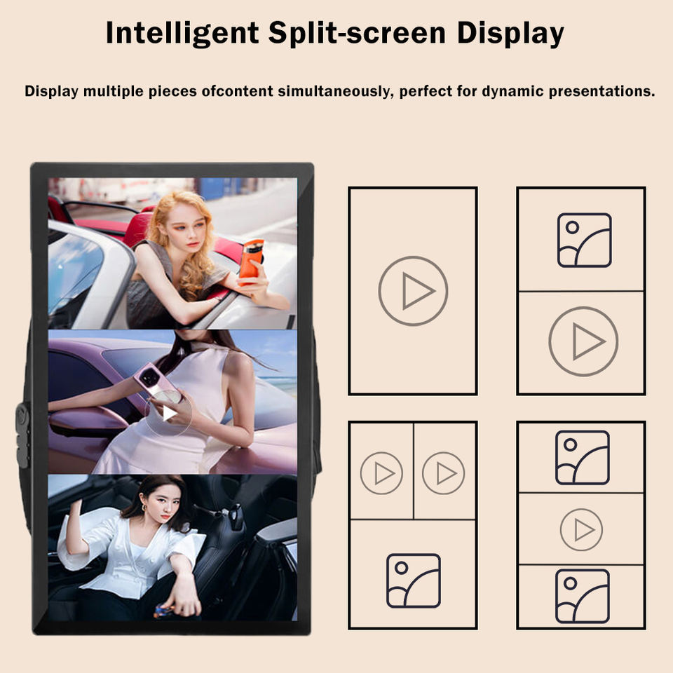 Uso:publicidad a pantalla completa, pantalla dividida, bucle, temporizador, gestión remota