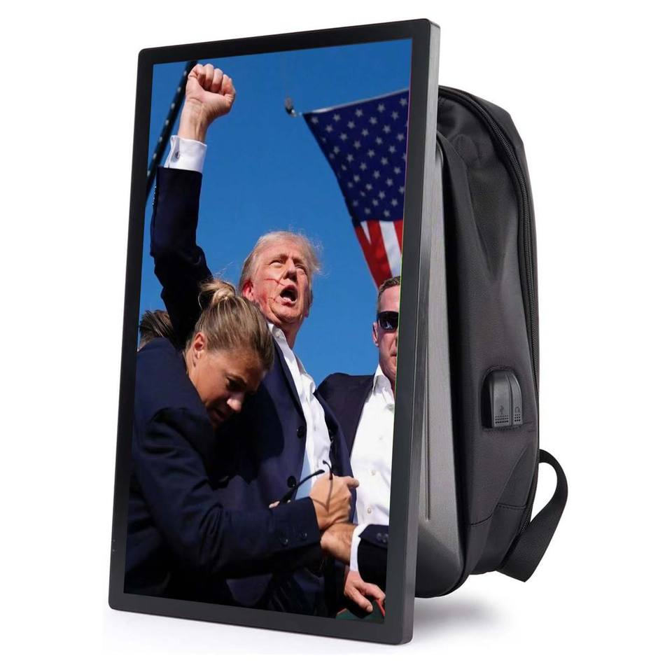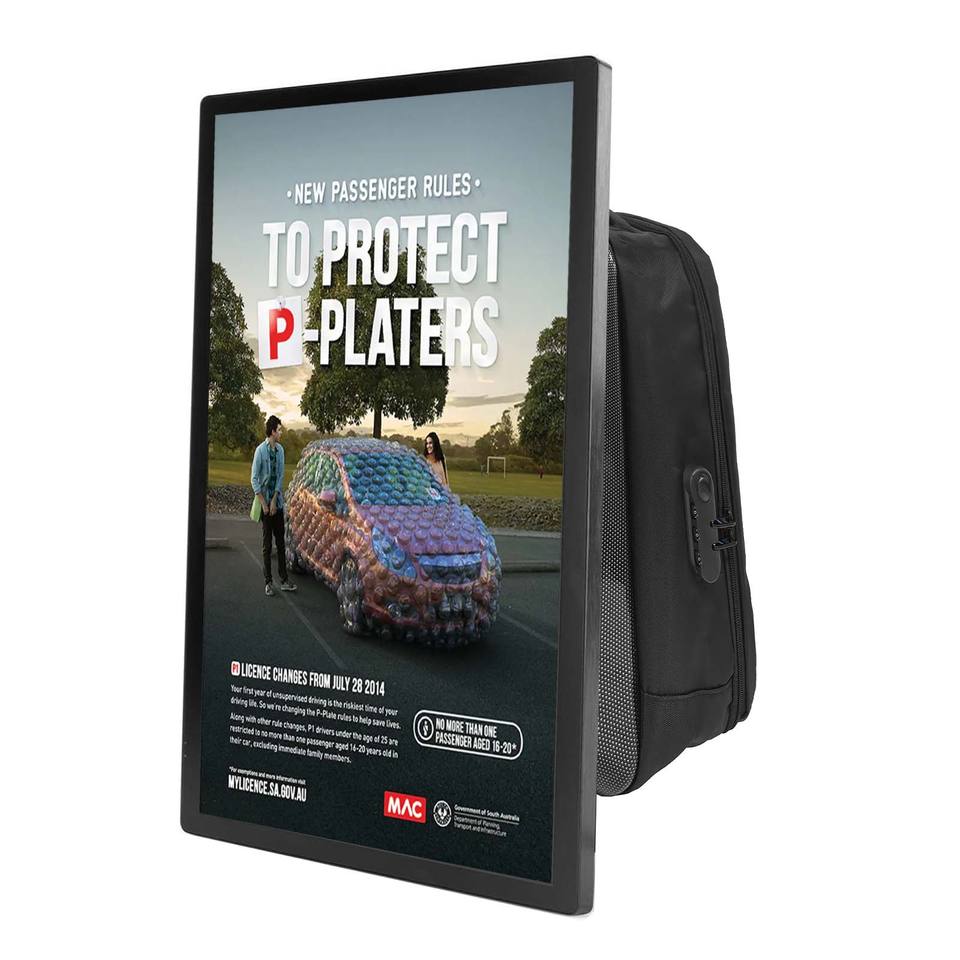 Mochila publicitaria LCD de 21,5 pulgadas, cartelera Digital, mochila para caminar humano, cartelera publicitaria con batería