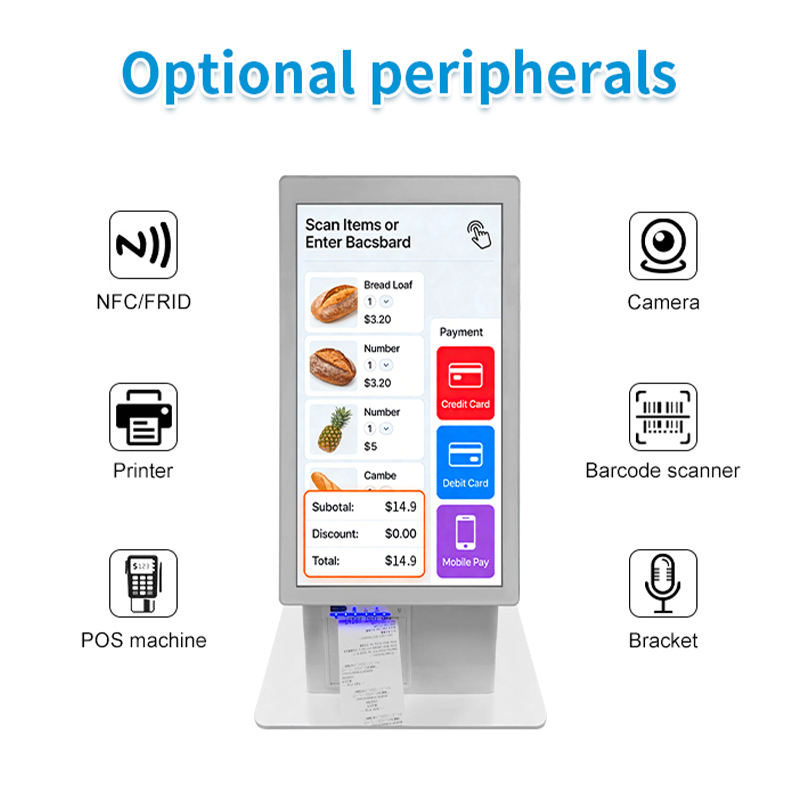 Impresora de código de barras, Lector de código de barras, Cámara, Lector de tarjeta, Lector de tarjetas eléctrico, Escáner de la huella dactilar, Solución POS, Escáner de código del QRPiezas opcionales