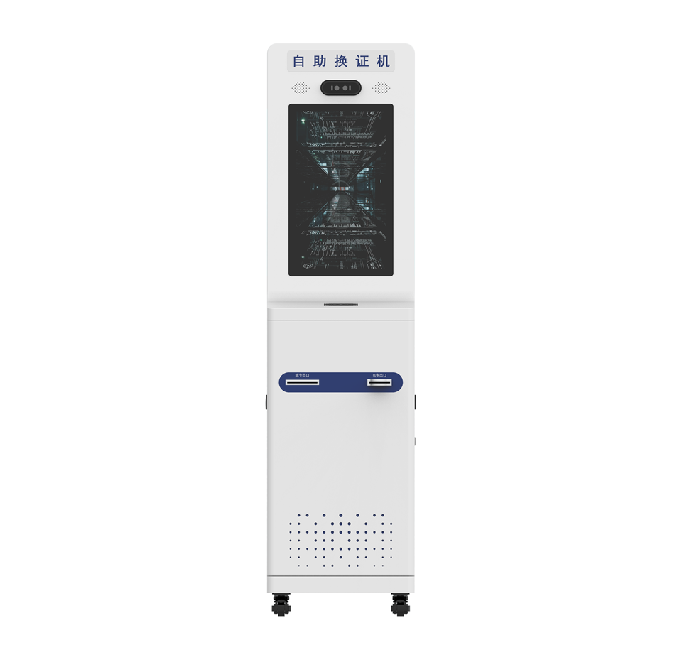 Máquina de autoservicio de 21.5 pulgadas para reemplazo de certificados con lector de código de barras SDK para renovación de tarjetas de identificación y tarjetas IC (de pie, multi-OS)