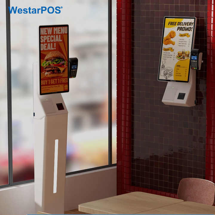 WestarPOS CRS001 Kiosco de Autoservicio para Comida Rápida con Pantalla Grande de 23.8 Pulgadas, Montaje en Pared o de Pie