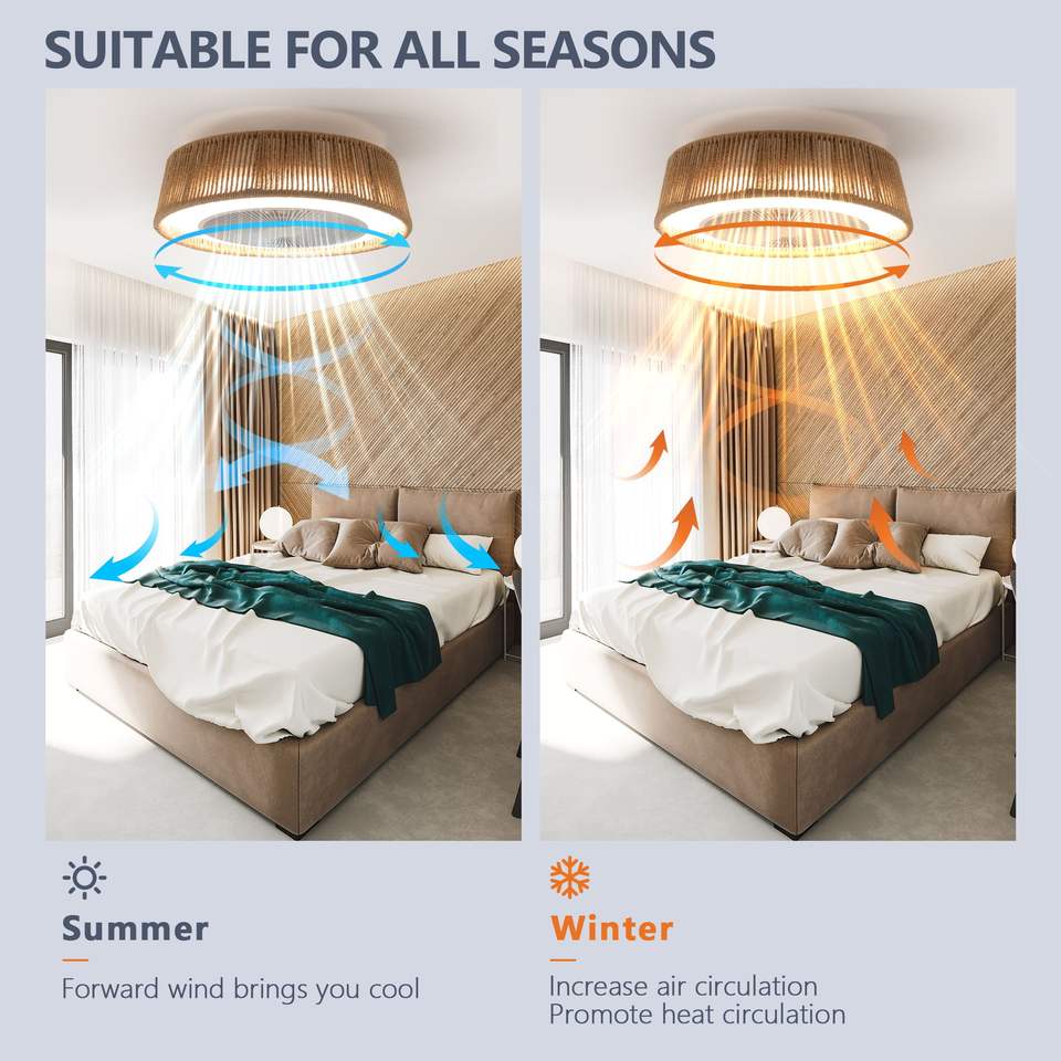 Ventilador de Techo LED Trenzado Estilo Bohemio de 21 Pulgadas con Control Remoto Silencioso y Función de Temporizador Ajustable, Igual que W1340137055/L10003