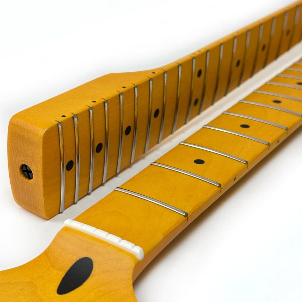 Mástil de guitarra ST de arce canadiense con acabado nitro satinado, 21 trastes, radio de 9.5 pulgadas y agujero de afinación de 8 mm