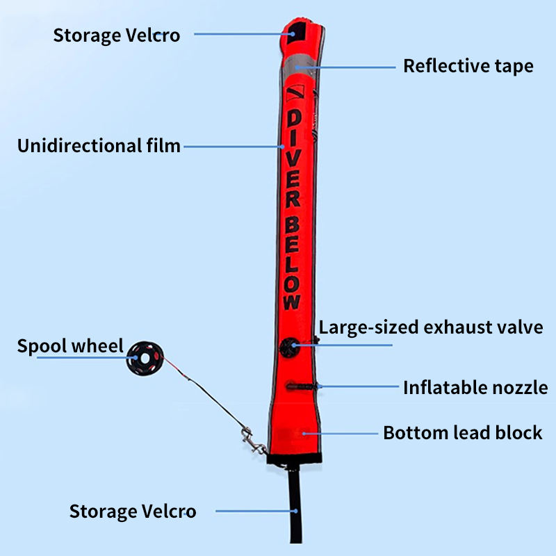 Boya de posicionamiento de rescate acuático de nailon 210D, Ayuda de buceo de alta flotabilidad, producto de seguridad acuática de primera calidad