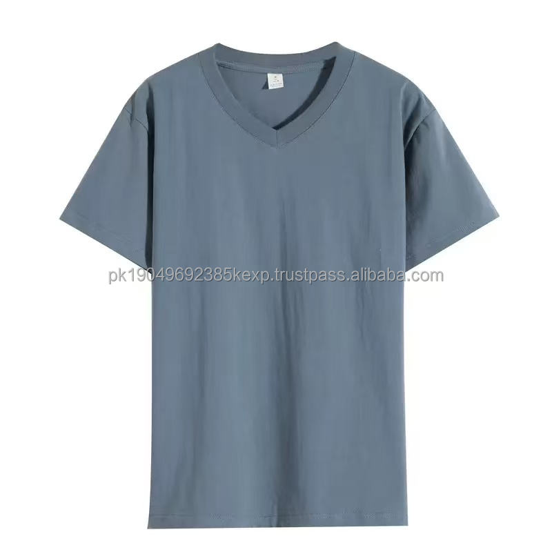 Camiseta de Verano para Hombre, 210G, 100% Algodón, Corte Regular, Color Sólido, Impresión de Logotipo Personalizado, Camiseta Básica Blanca con Cuello en V