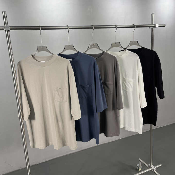 Camiseta de Manga Corta de 215g, 100% Algodón, Estampado Serigrafiado, Corte Casual, Lavada, Bordes Suaves, Cinco Botones, Diseño con Bolsillo en el Cuello