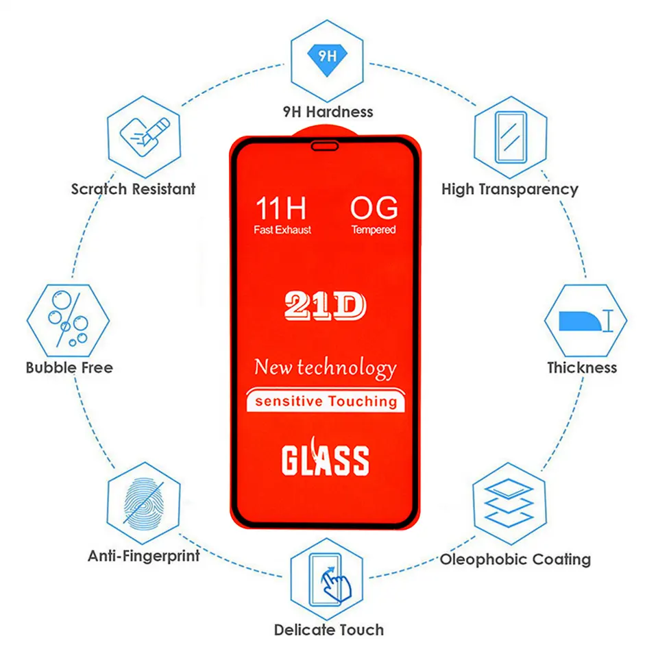 Protector de Pantalla de Vidrio Templado 21D para iPhone 15 14 13 12 Pro Max Tecno Infinix Realme al por Mayor