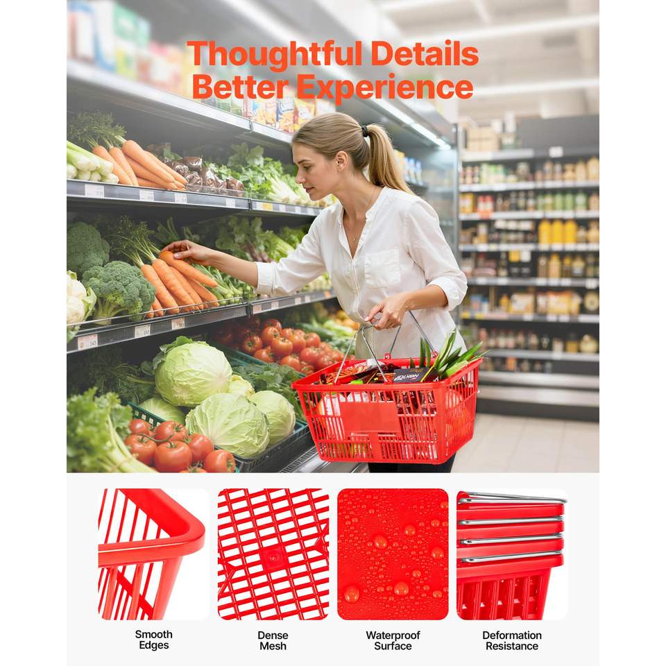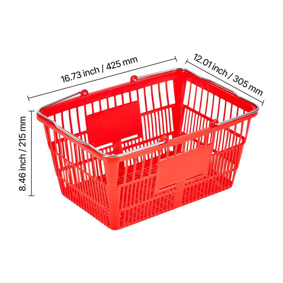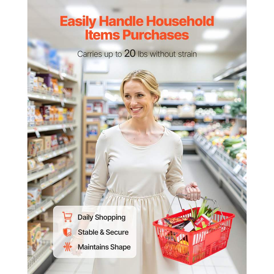 Cestas de Compras Apilables de Plástico PE de 21L, 12 Unidades con Asas Metálicas, Estructura de Malla Densa, Capacidad para 20 Libras