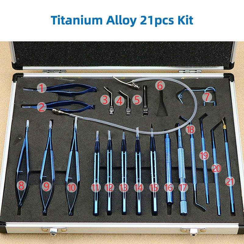 Juego de 21 Piezas de Instrumentos Oftálmicos de Acero Inoxidable Duradero con Certificación CE para Cirugía de Implante de Lentes Intraoculares Microquirúrgicas