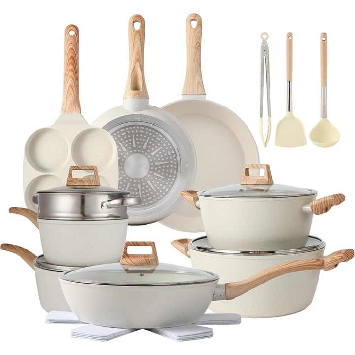Juego de Utensilios de Cocina de 21 Piezas, Antiadherente, de la Mejor Calidad, Ollas de 28 cm, 24 cm, 20 cm y 18 cm, Sartenes de 28 cm y 24 cm, con Utensilios de Silicona, Base de Inducción