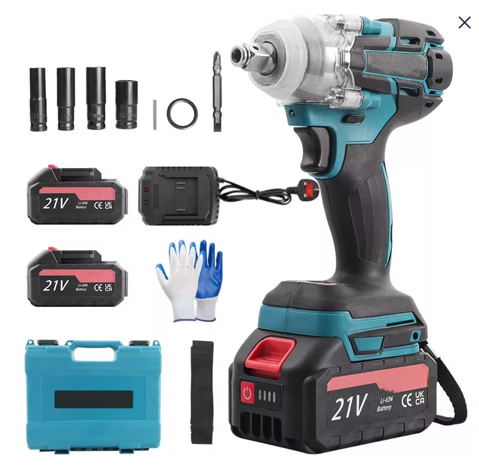 Batería de 21V, llave eléctrica inalámbrica de par grande, llave de impacto eléctrica de litio sin escobillas para reparación de neumáticos, uso Industrial DIY