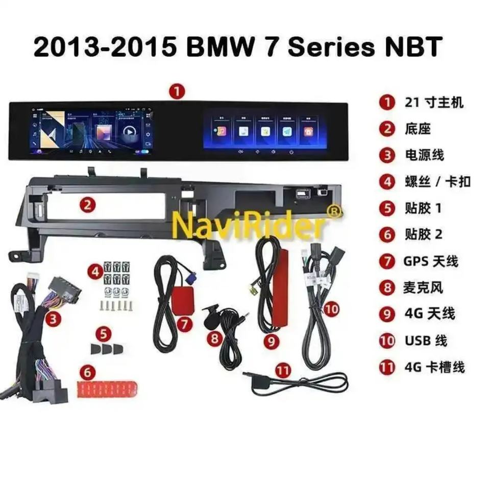 Unidad Principal con Pantalla Curva Dual Android de 21 Pulgadas para BMW Serie 7 F01 F02 F04 2009-2015, Reproductor Multimedia Estéreo, USB, CarPlay, TV, GPS