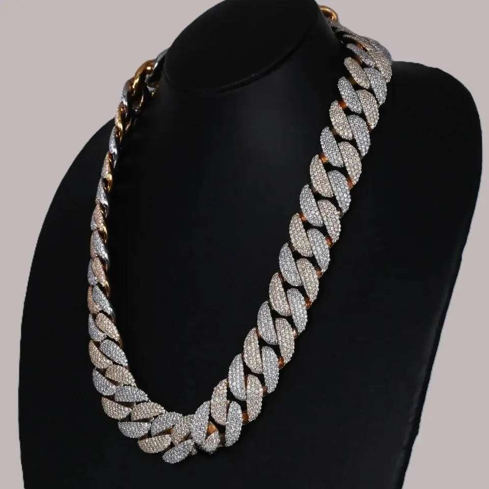 Cadena de eslabones cubanos Hip Hop de 22 pulgadas, dos tonos, oro rosa, moissanita, 18MM, collares finos de diamantes para hombres, Plata de Ley 925