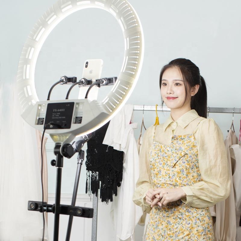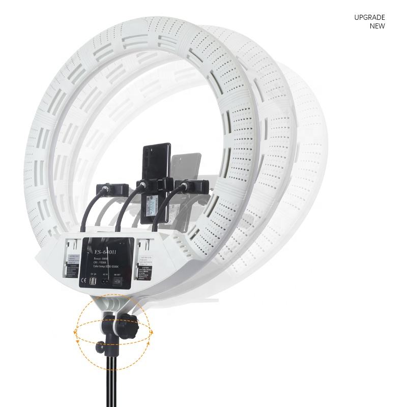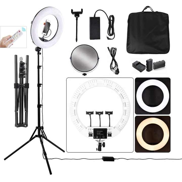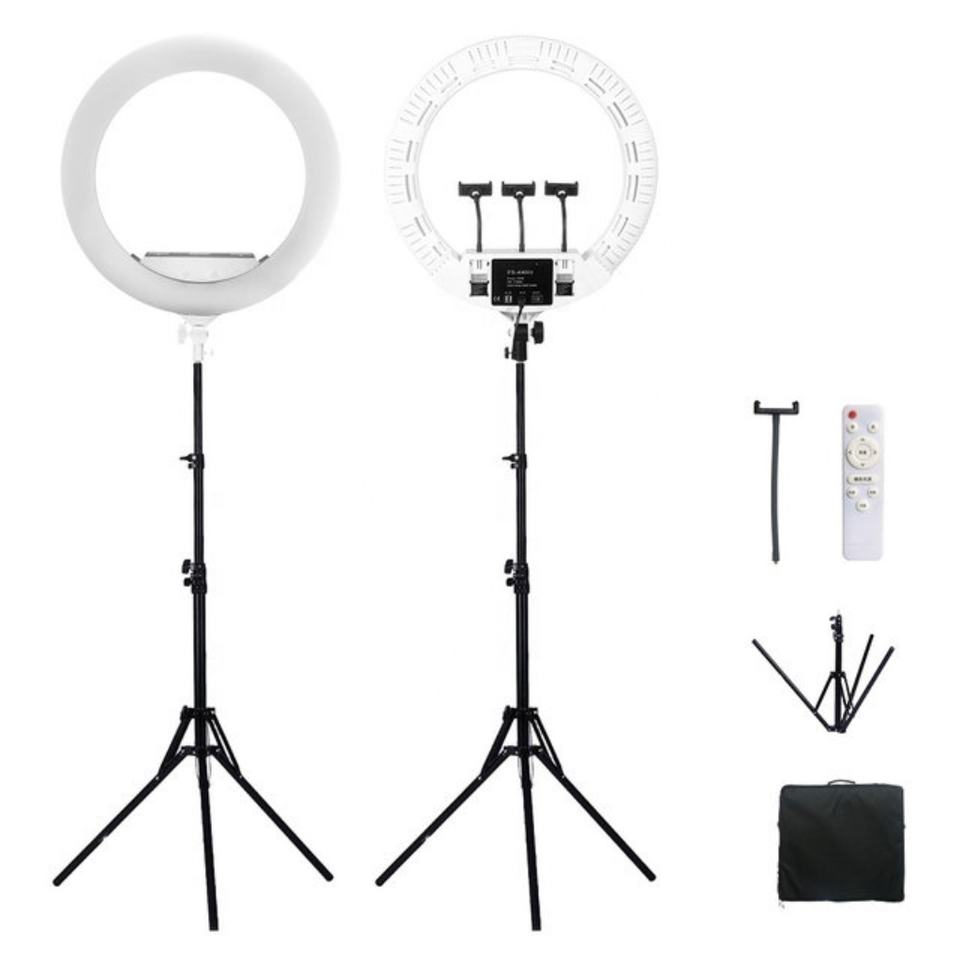 Anillo de luz de 22 pulgadas + soporte para teléfono + enchufe de alimentación + mando a distancia.
