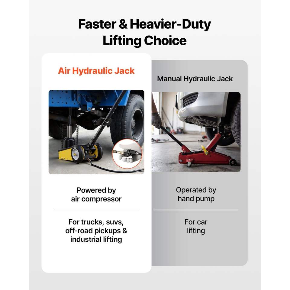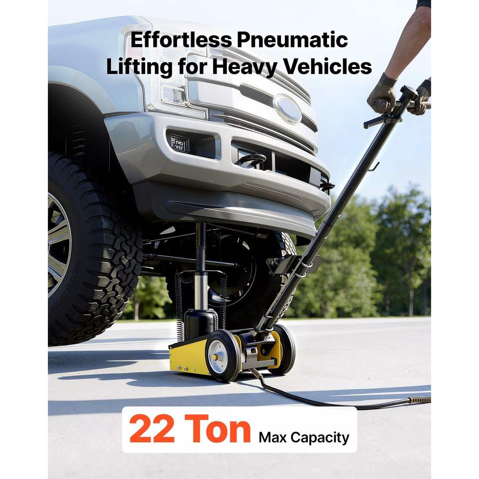 Gato hidráulico de suelo de acero de 22 toneladas (48501 lb) con pistón único, elevación rápida, postes de extensión y bomba de aire para elevación de vehículos