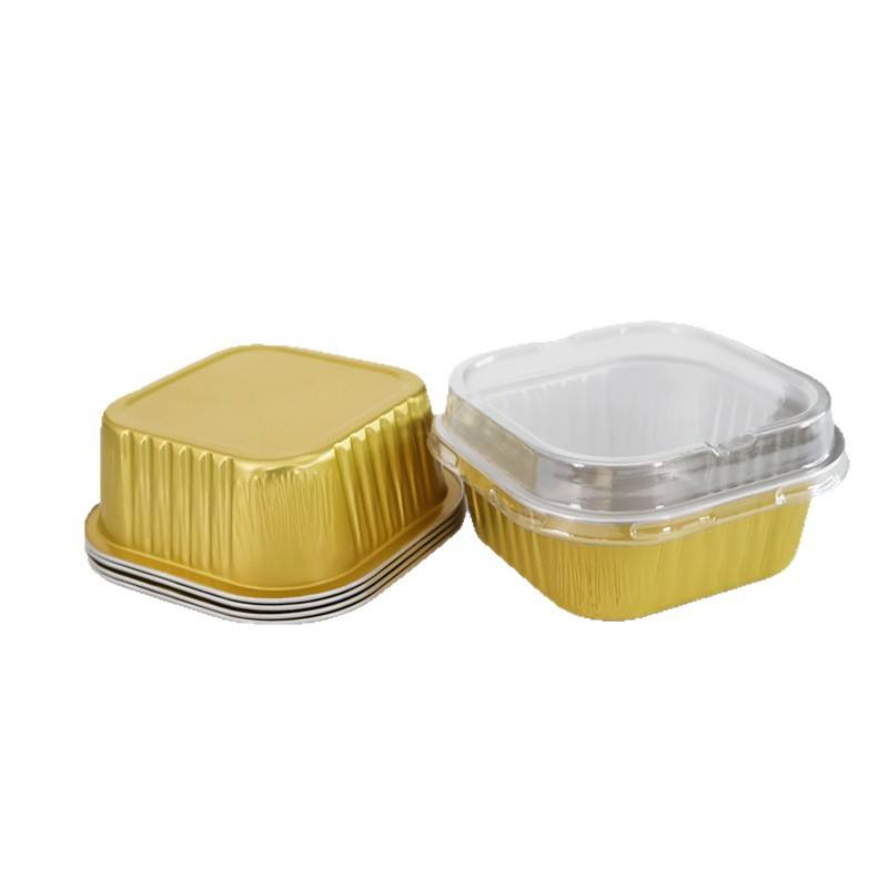 Contenedor Cuadrado Desechable de 220 ml para Postres, Mini Moldes de Aluminio para Hornear Muffins, Mousse, Gelatina, Pudín y Pastel