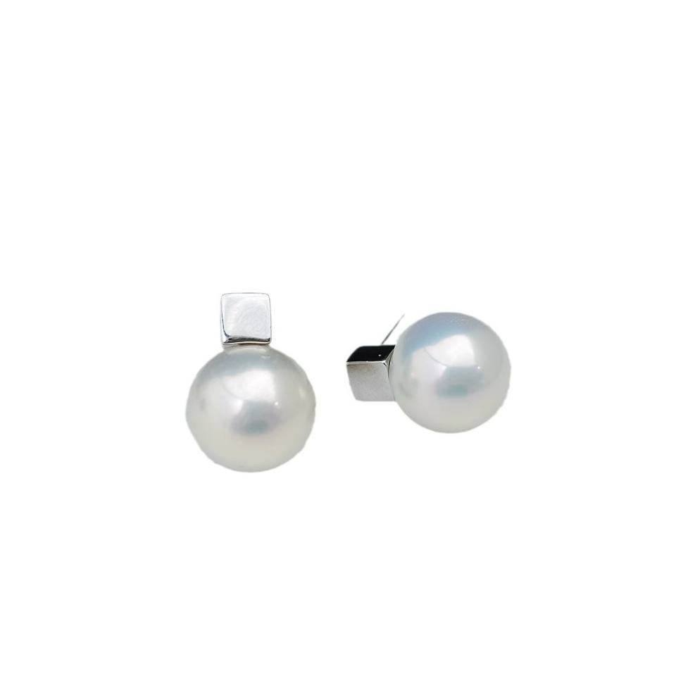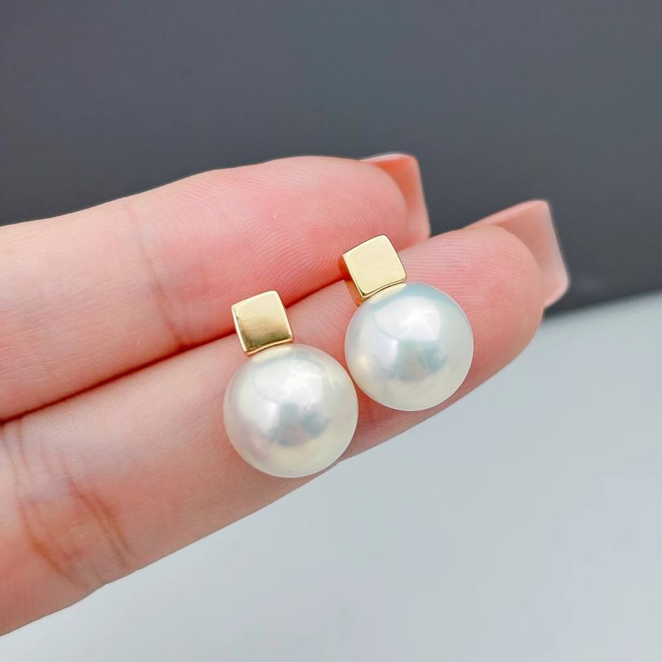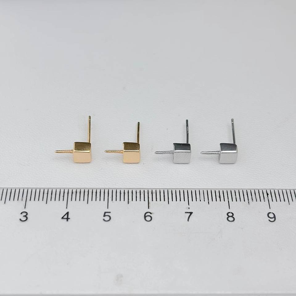22391DIY Pendientes de Botón Finos con Base Vacía de Plata S925 para Perlas Cuadradas y Redondas de 9-15mm, Accesorios de Joyería