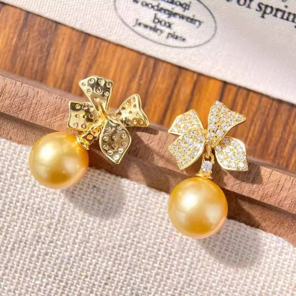 22646 S925 Accesorios de Plata para DIY con Perlas, Bandeja Vacía con Forma de Lazo para Perlas Redondas de 9-13 mm, para Pendientes de Moda