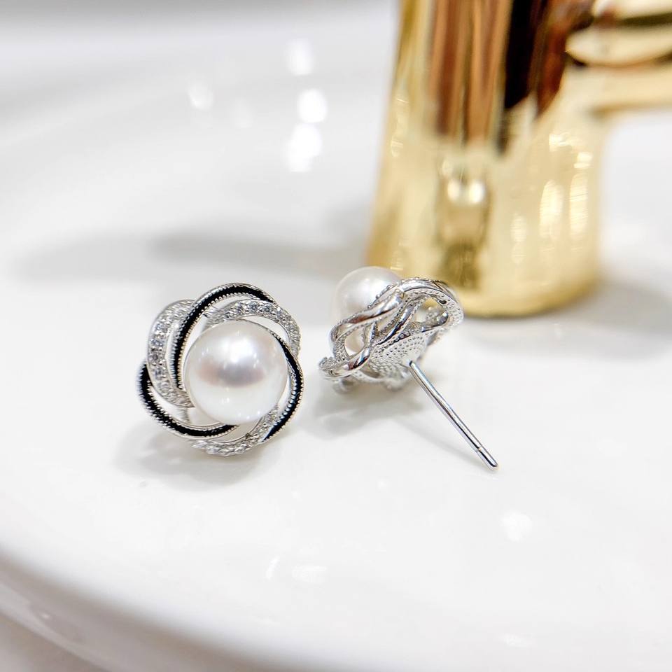 WENCHI 10973 - Soporte para Pendientes de Plata de Ley S925, Simple y Moderno, con Cuentas de 7-8 mm para Pendientes de Perlas para Mujer