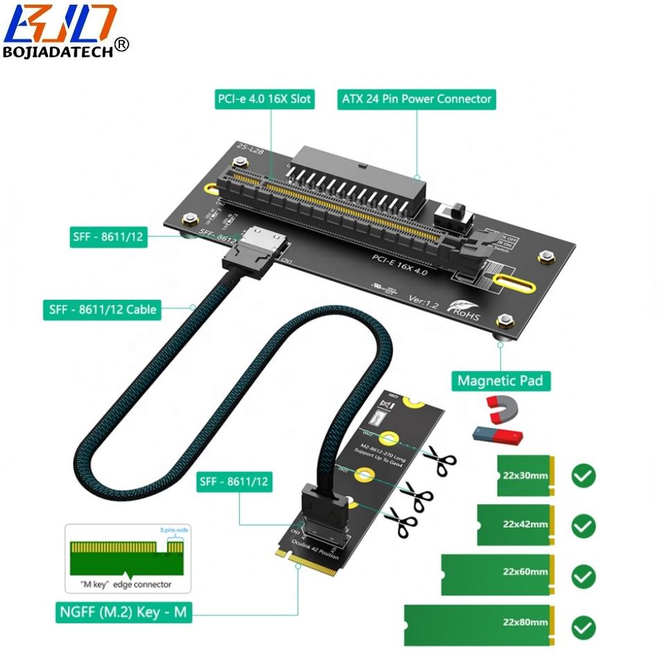 Adaptador de Ranura PCI-E 4.0 X16 a M.2 NVME M-Key 2280, Entrada ATX de 24 Pines, Cable de Extensión Oculink SFF-8611 para Tarjeta Gráfica Externa