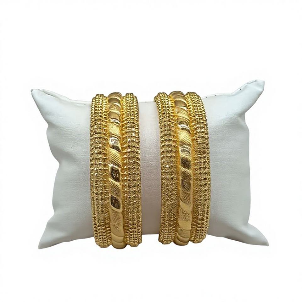 Juego de Brazaletes de Oro Sólido de 22K para Mujer, Kadas Indias Tradicionales, Elegantes Brazaletes de Oro Amarillo Hechos a Mano