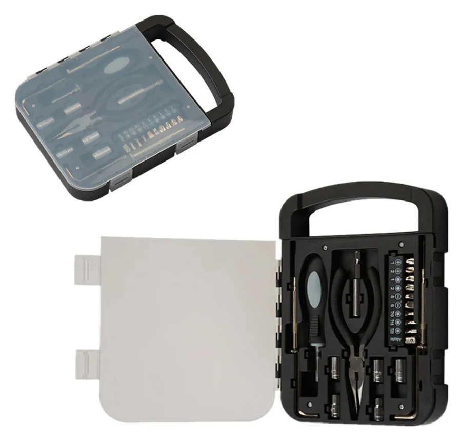 Juego de herramientas portátil de acero al carbono, caja de transporte transparente, destornillador, kit de utilidad para tareas de bricolaje en el hogar y reparaciones al aire libre, 22 Uds.
