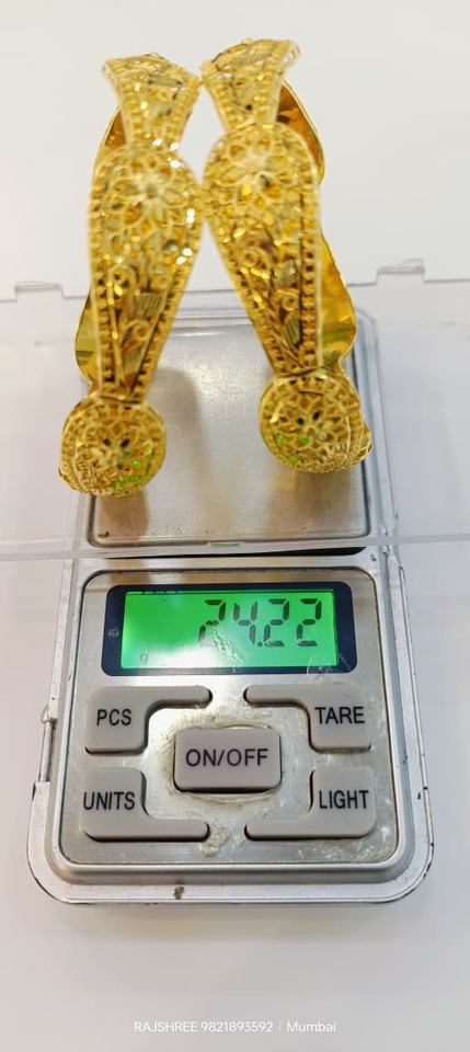 Juego de Brazaletes de Oro Sólido de 22k para Mujer, Diseño Tradicional Indio de Filigrana con Flores, Brazaletes Kada de Oro, Joyería Nupcial para Bodas