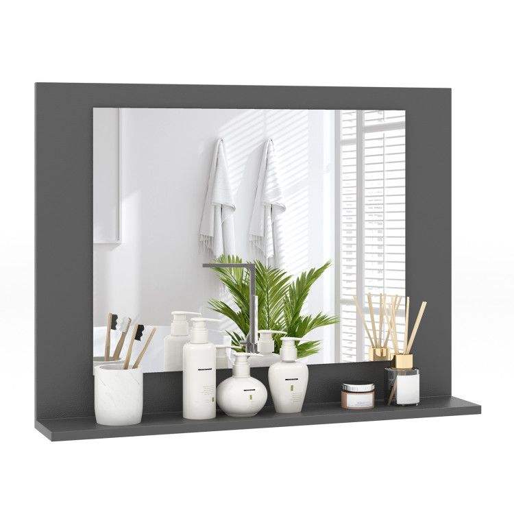 Espejo de Baño Rectangular de 23.5 X 17.5 Pulgadas con Marco de Madera y Estante