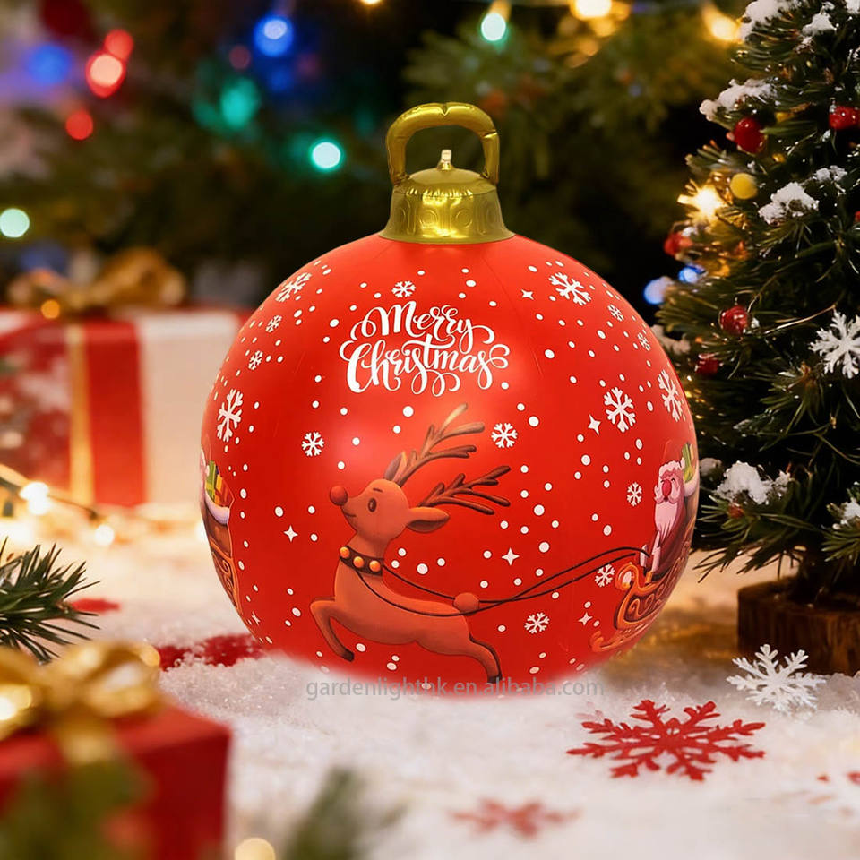 Nombre del producto:Pelota inflable de PVC de 23,6 pulgadas con diseño de reno tirando de un carro