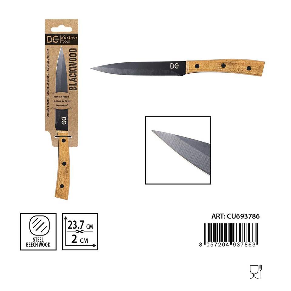 Cuchillo de Cocina Multiusos de Acero Negro Resistente para Diestros, Accesorio de 23.7x2 cm