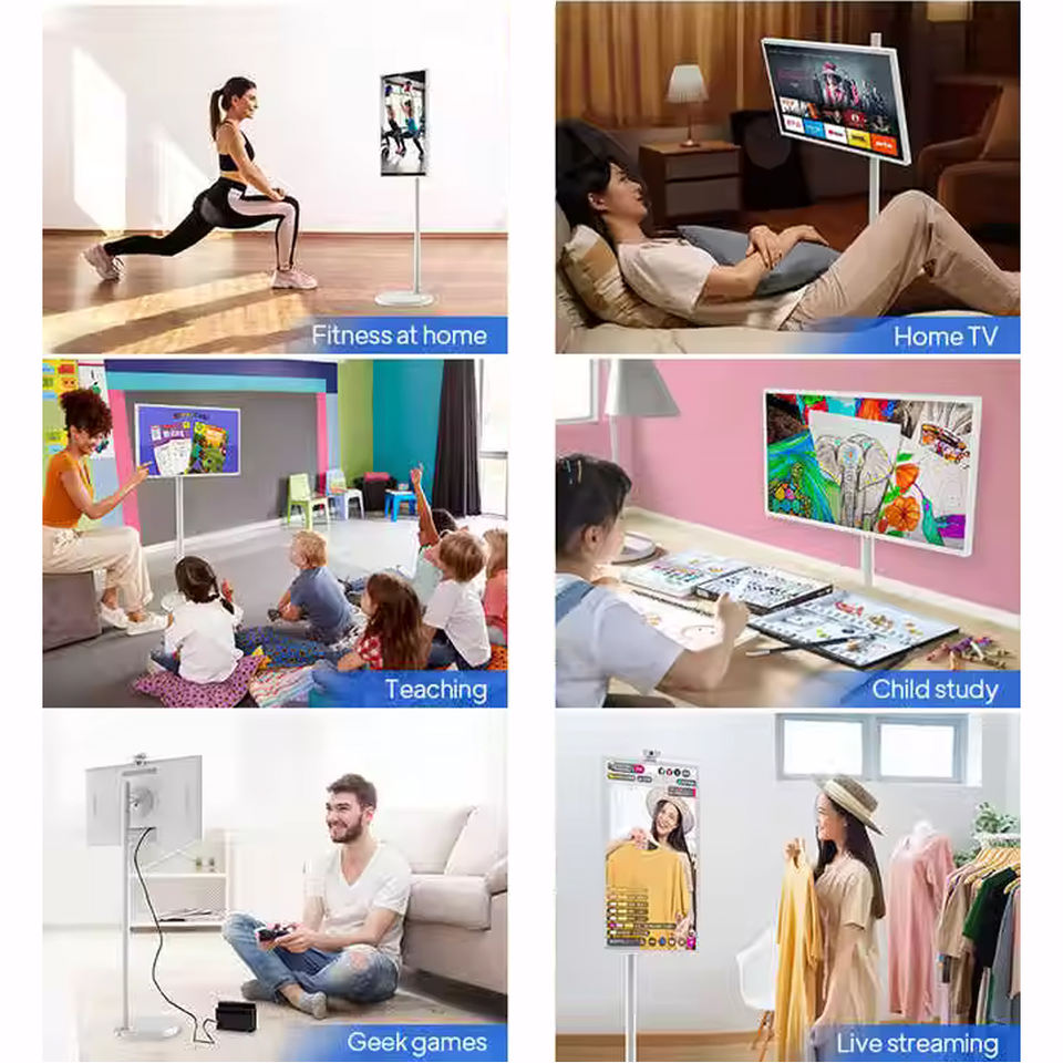 Monitor de TV inteligente Android 23,8 27 32 pulgadas con pantalla táctil, cámara integrada y soporte abatible para entretenimiento educativo familiar