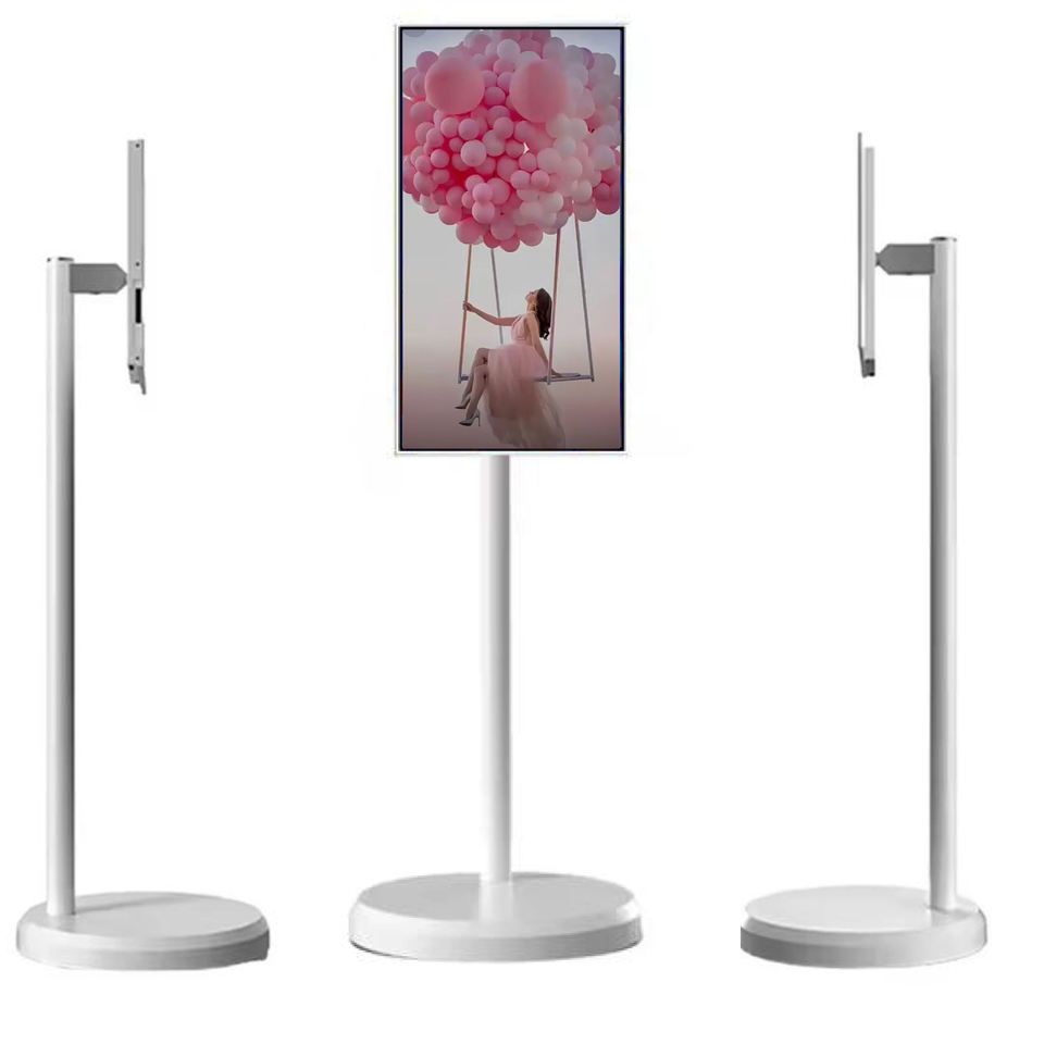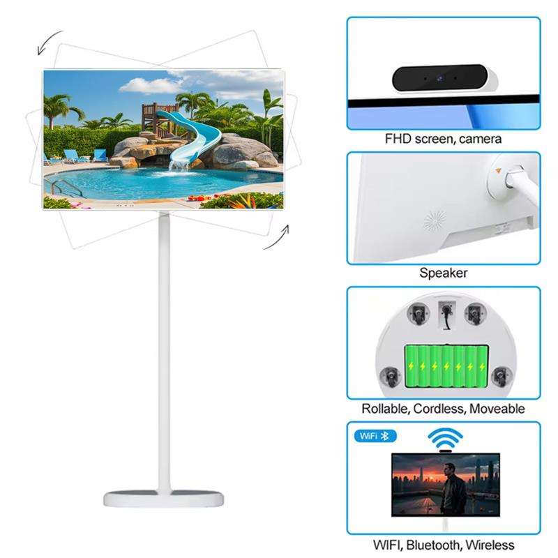 TV inteligente portátil con pantalla táctil Android blanca de 23,8 pulgadas, TV móvil con pantalla Vertical para animación de uso en centros comerciales
