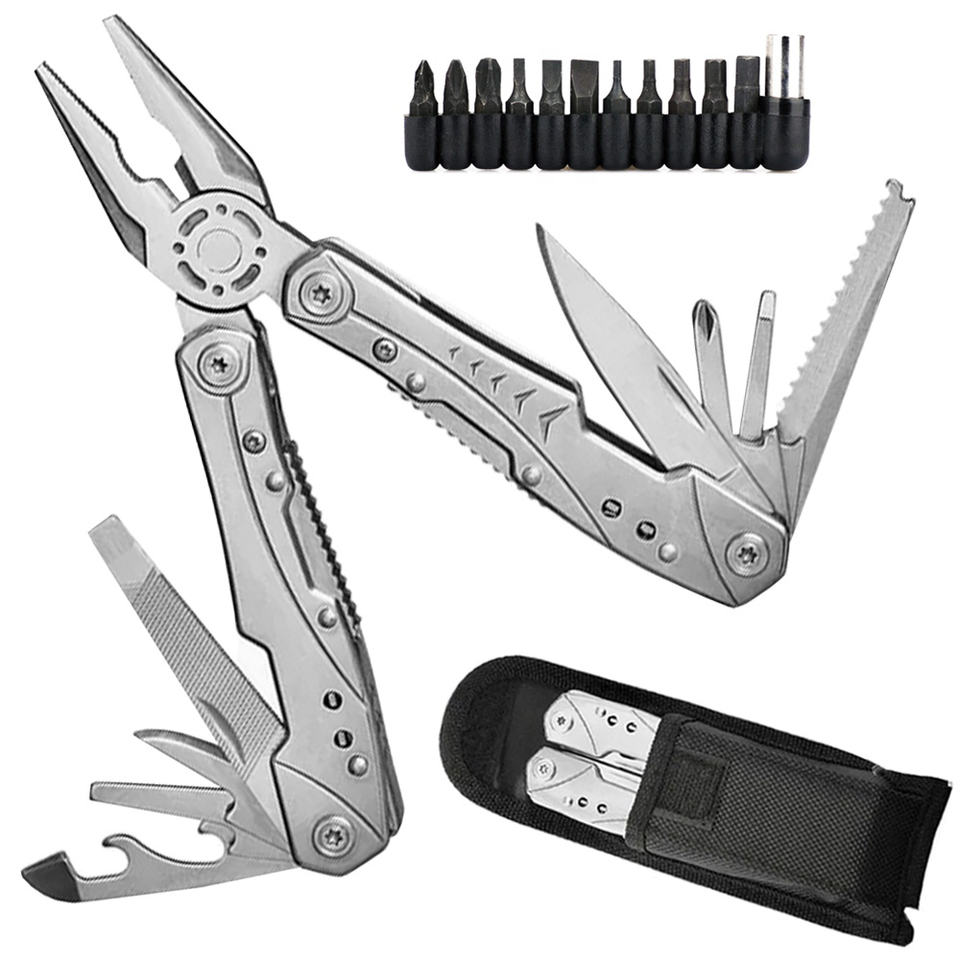 Herramienta Multiusos 23 en 1 con Estuche, Alicates Plegables de Acero Inoxidable, Cuchillo, Destornillador, Equipo de Supervivencia al Aire Libre