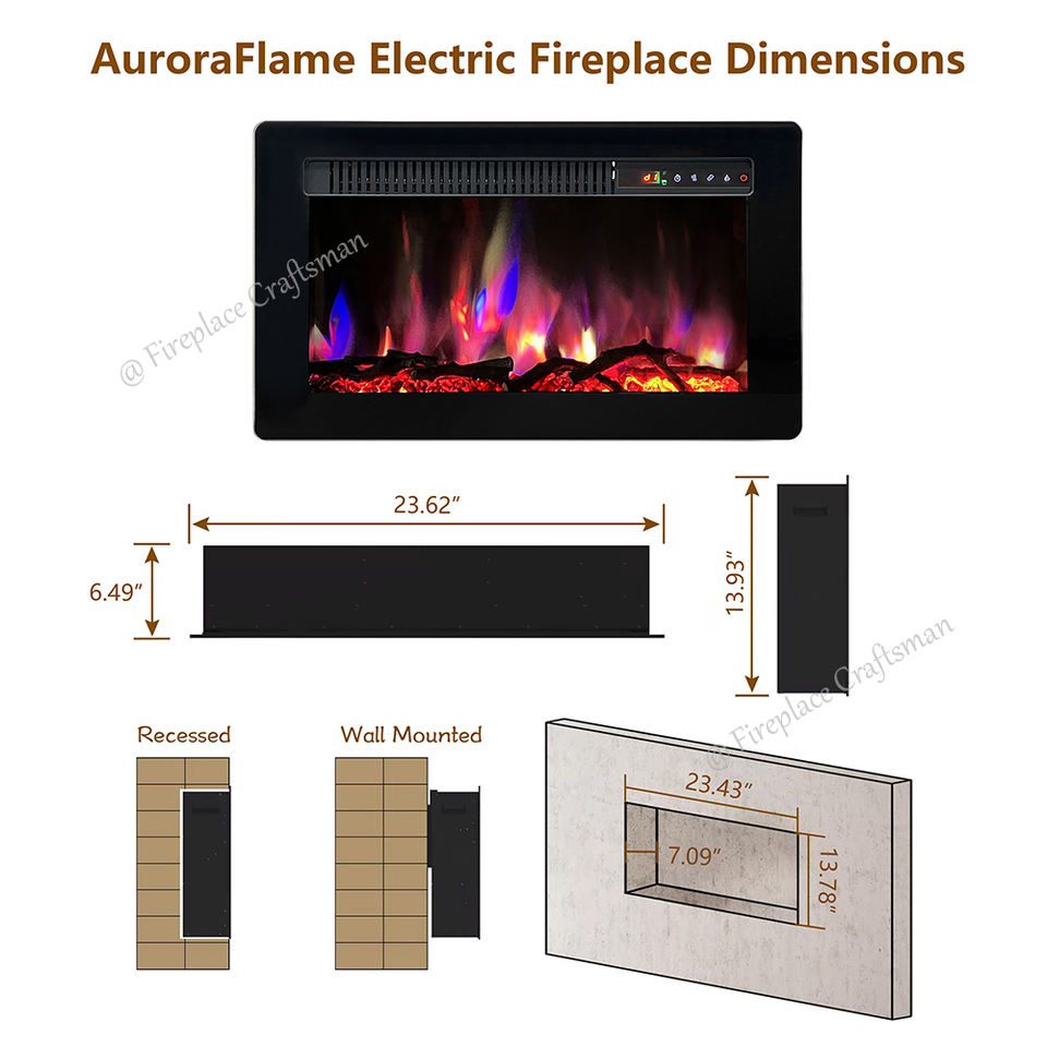 Calentador de chimenea de montaje en pared eléctrico de llama de decoración de 23 pulgadas con Control remoto de llama de simulación
