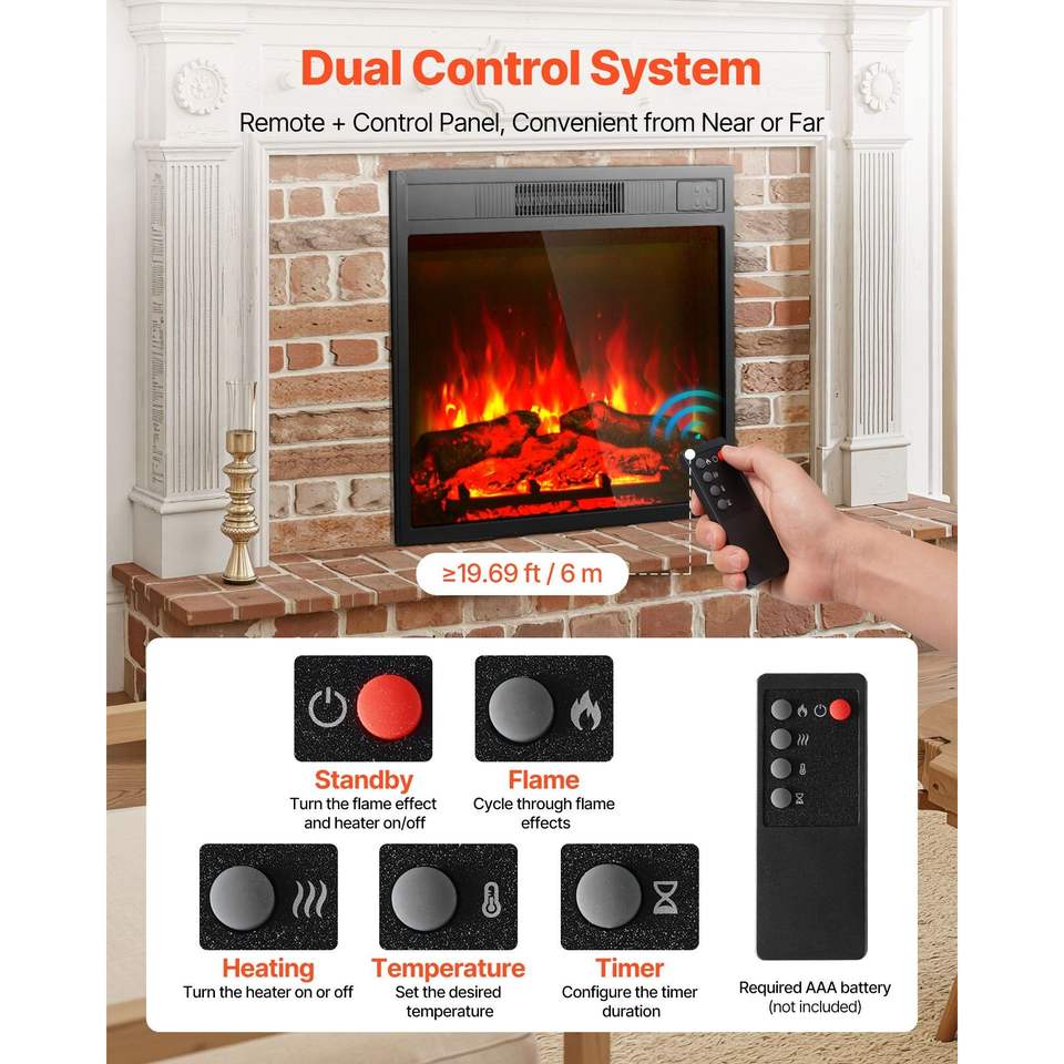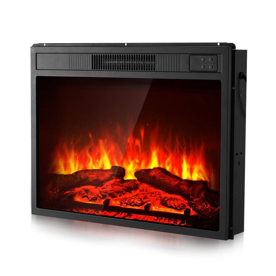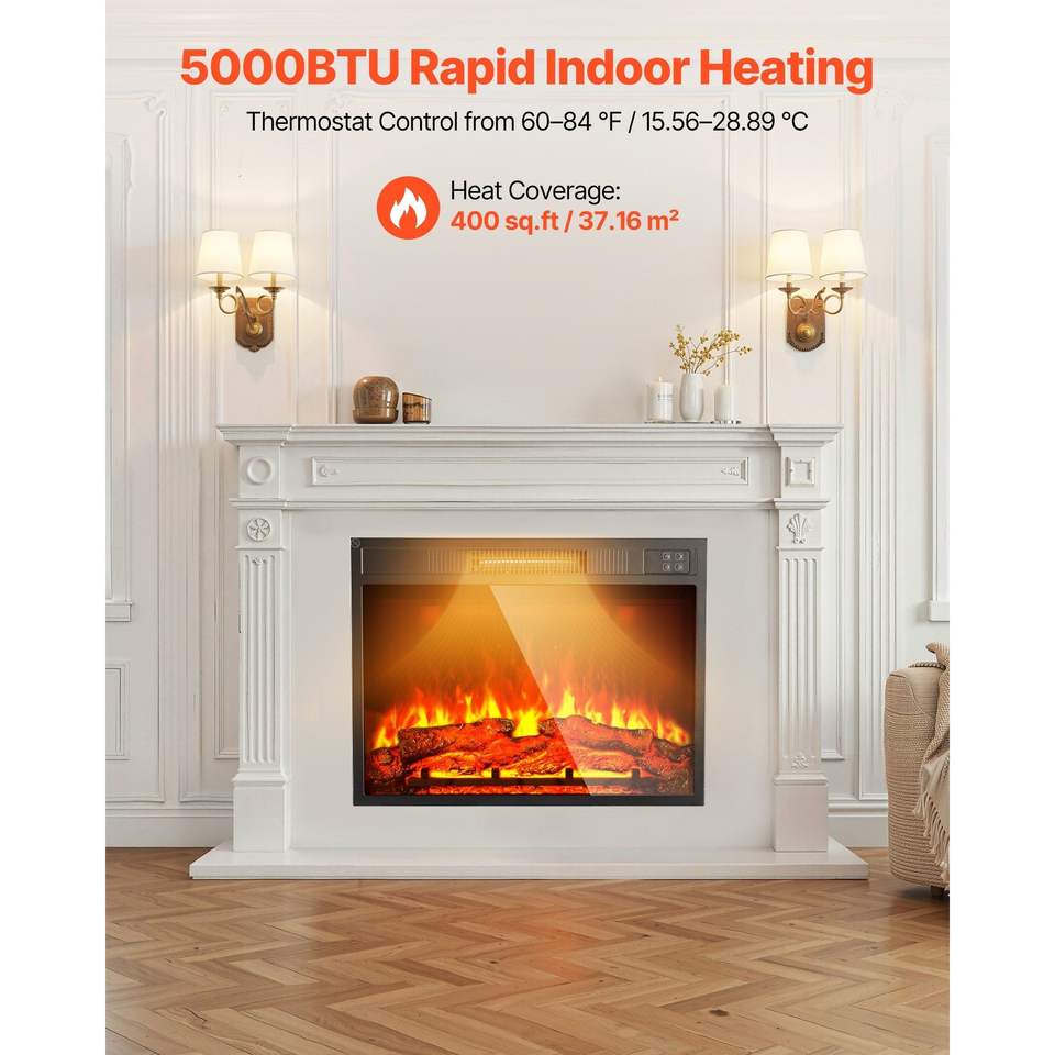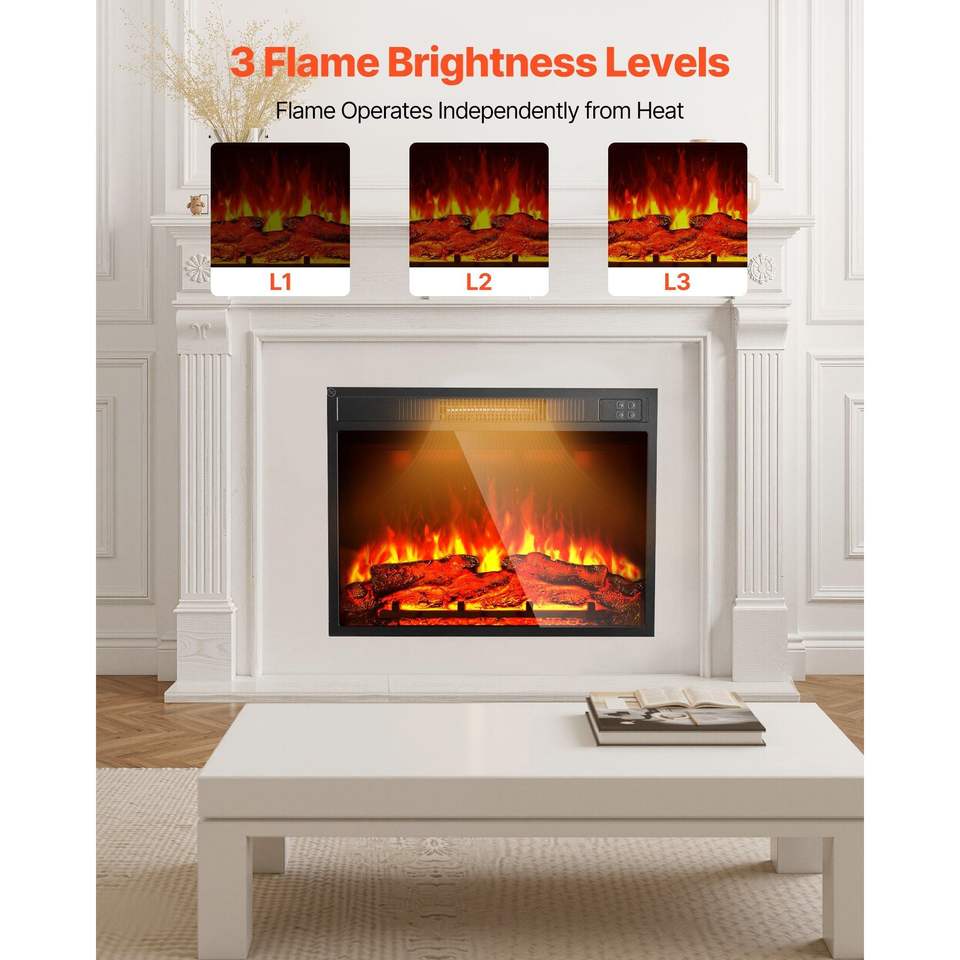 Chimenea Eléctrica de 23 Pulgadas para Montar en la Pared con 3 Niveles de Brillo de Llama Ajustables, Temporizador de 24h y Control Remoto