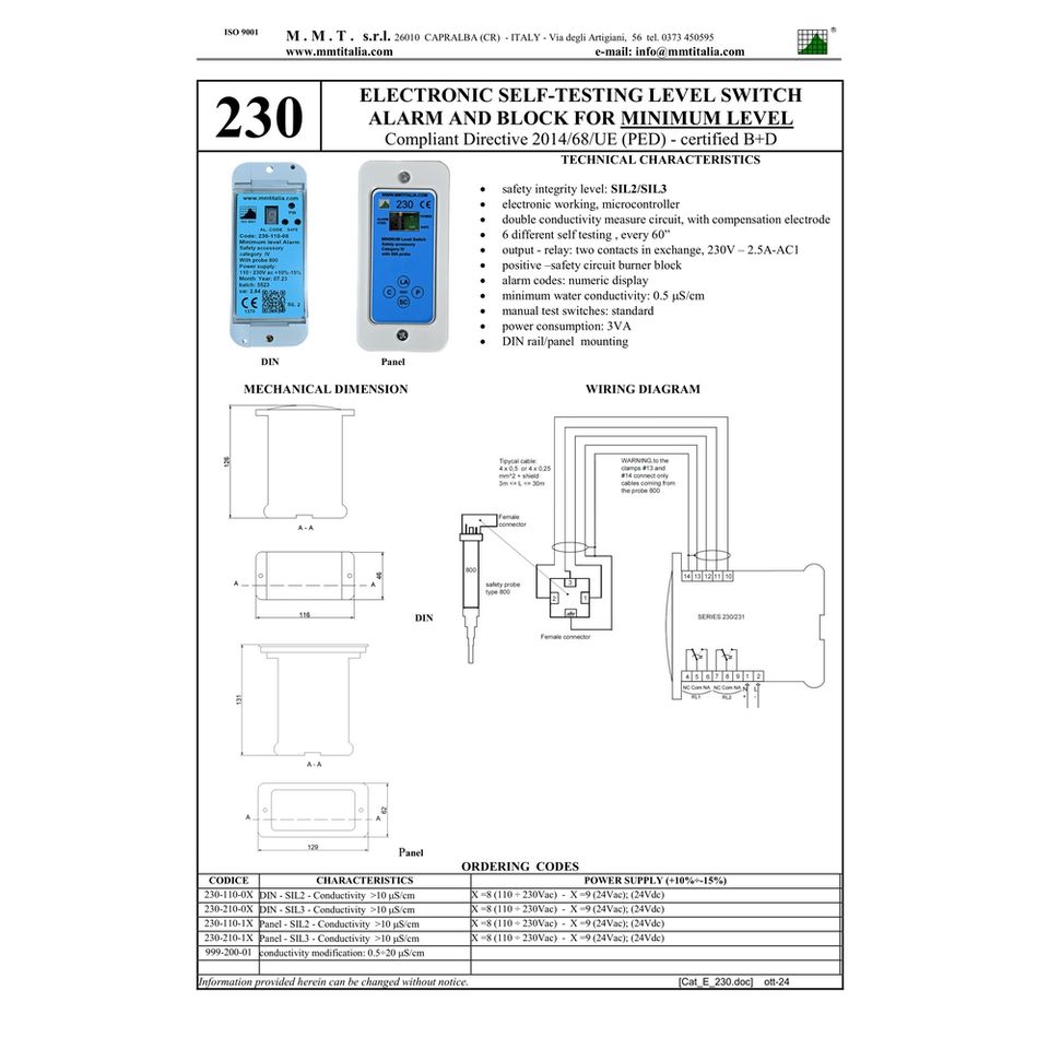 Limitador de nivel de seguridad mínimo 230 con autodiagnóstico PED y certificado SIL2 110-230V AC