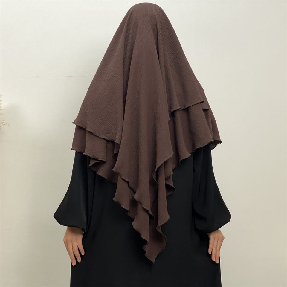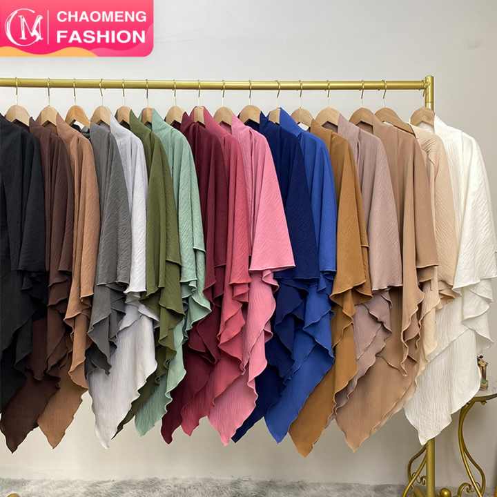 2307 # Último Modelo de Khimar de Dos Capas, Crepé Arrugado, Sencillo y Versátil, Color Sólido, Abaya para Ramadán, Bufanda para Mujer, Eid Abaya Khimar