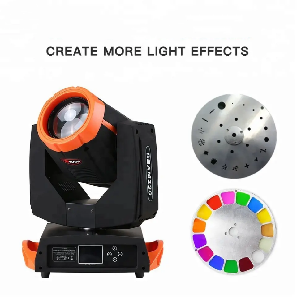Luz Móvil de Cabeza con Haz RGBW de 230W con Control DMX512 para Iluminación de Escenarios, Eventos y Festivales de Música