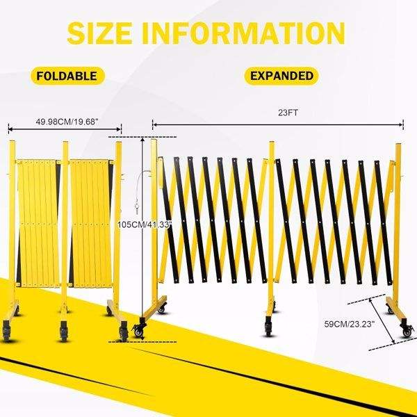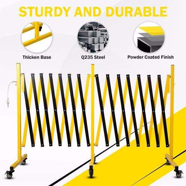 Barrera de Seguridad Retráctil de 23 Pies, Portátil, Metálica, Expandible, con Ruedas, para Uso en Exteriores
