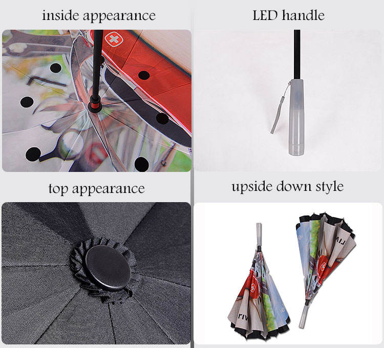 Product Name:Flashing light 23IN designer LED reverse umbrella with torch