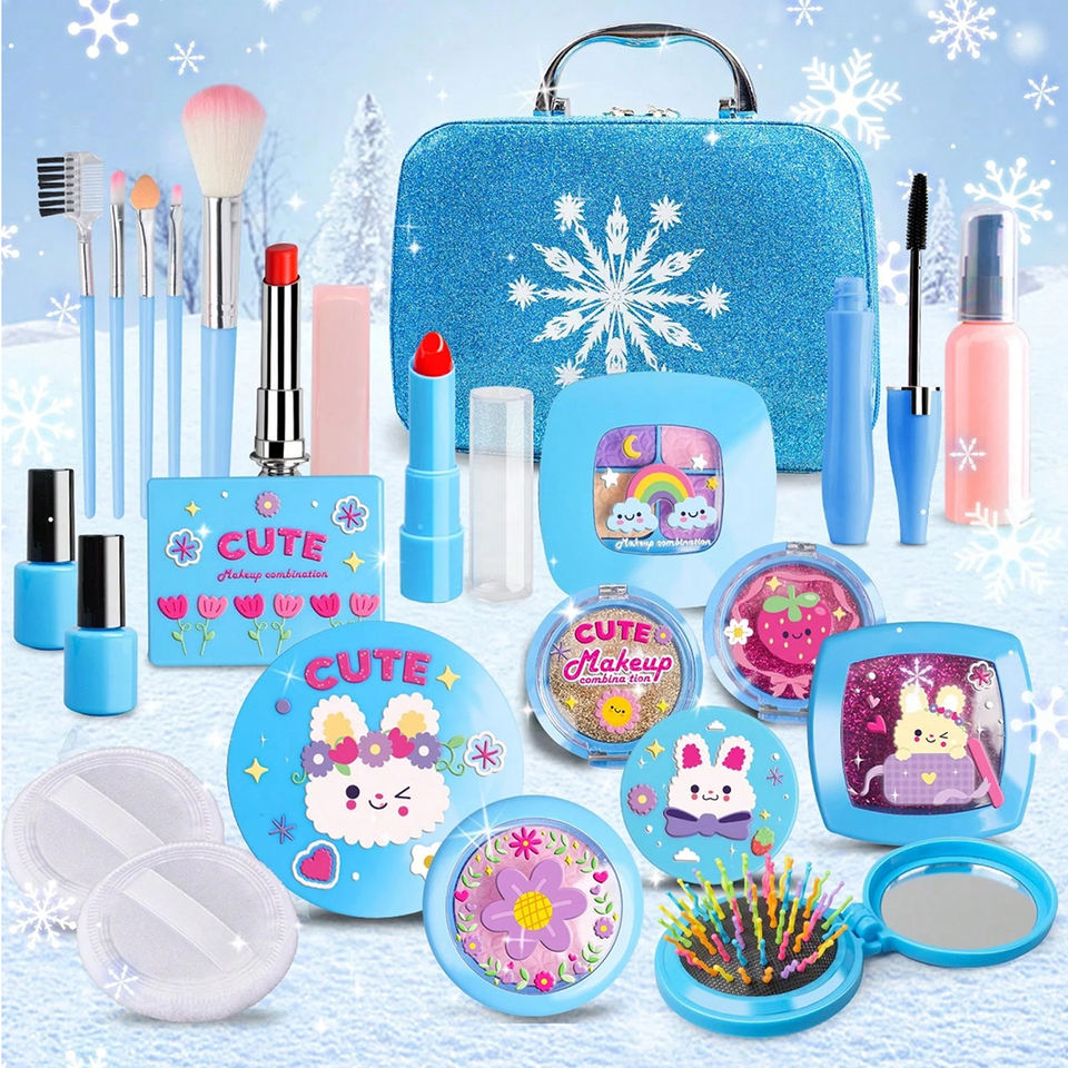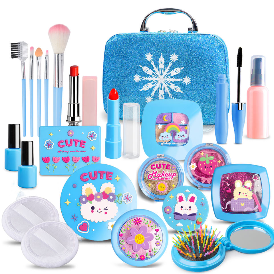 Kit de maquillaje para niños de 23 piezas, bolsa de cosméticos no real, juego de disfraces, juego de simulación, Maleta de maquillaje de princesa preescolar para niños y niñas