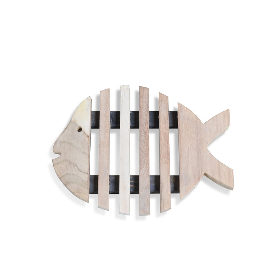 Título:Trivet en forma de pez de madera de teca sostenible